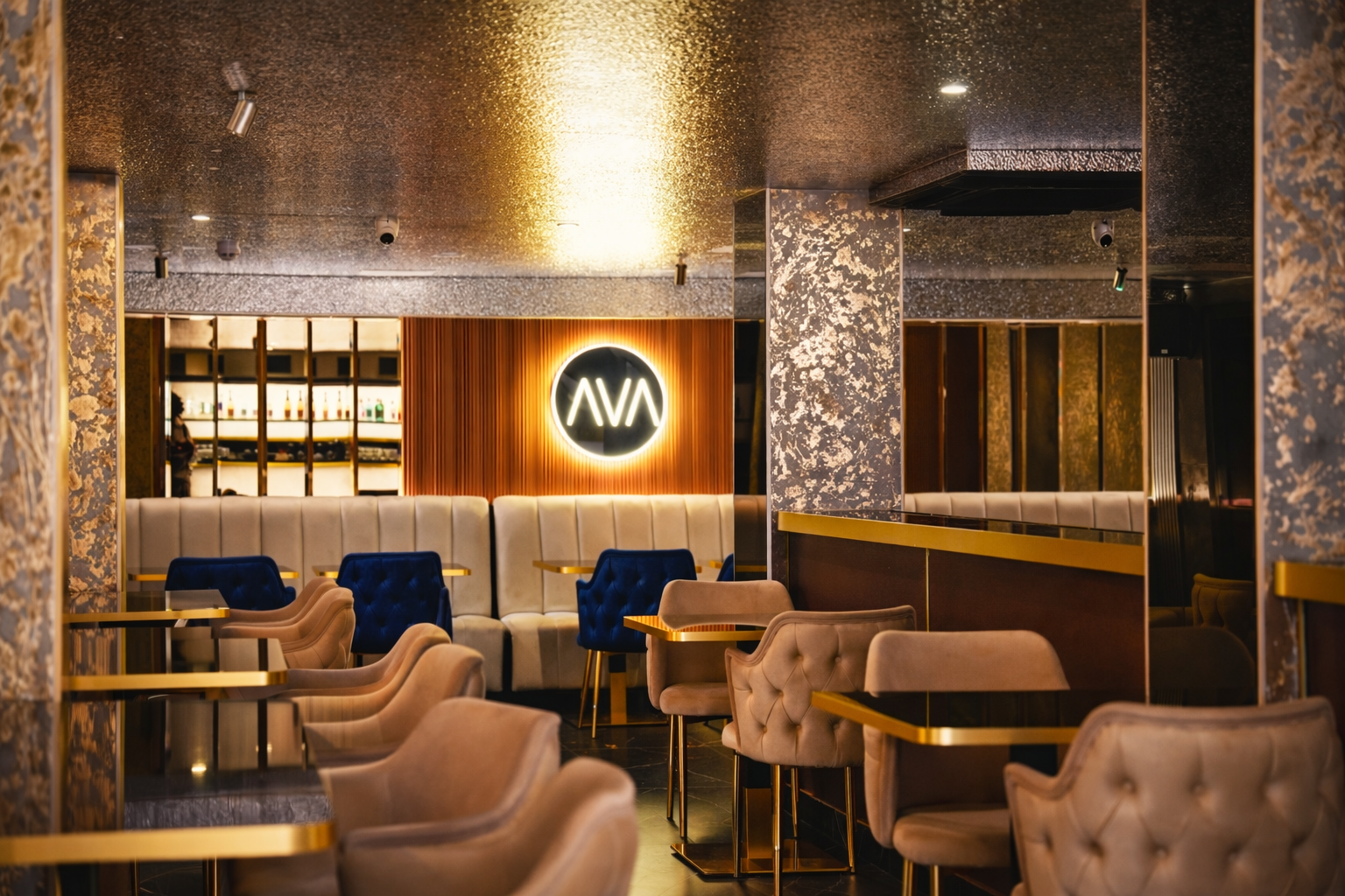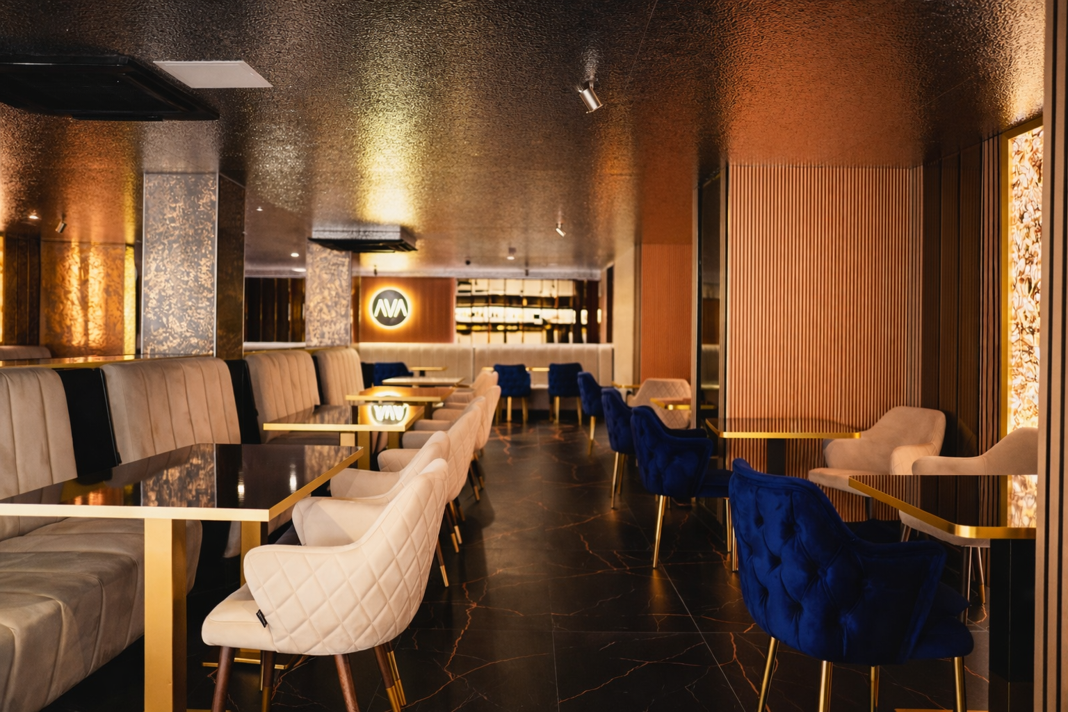 Welcome to AVA Lounge, a pinnacle of luxury where culinary artistry meets architectural excellence across four enchanting realms. Our thematic colors of white and gold weave seamlessly through each space, creating an atmosphere of timeless opulence. Join us on a journey through the Outdoor, Ground, Mezzanine, and Basement dining experiences, each with its own unique charm.