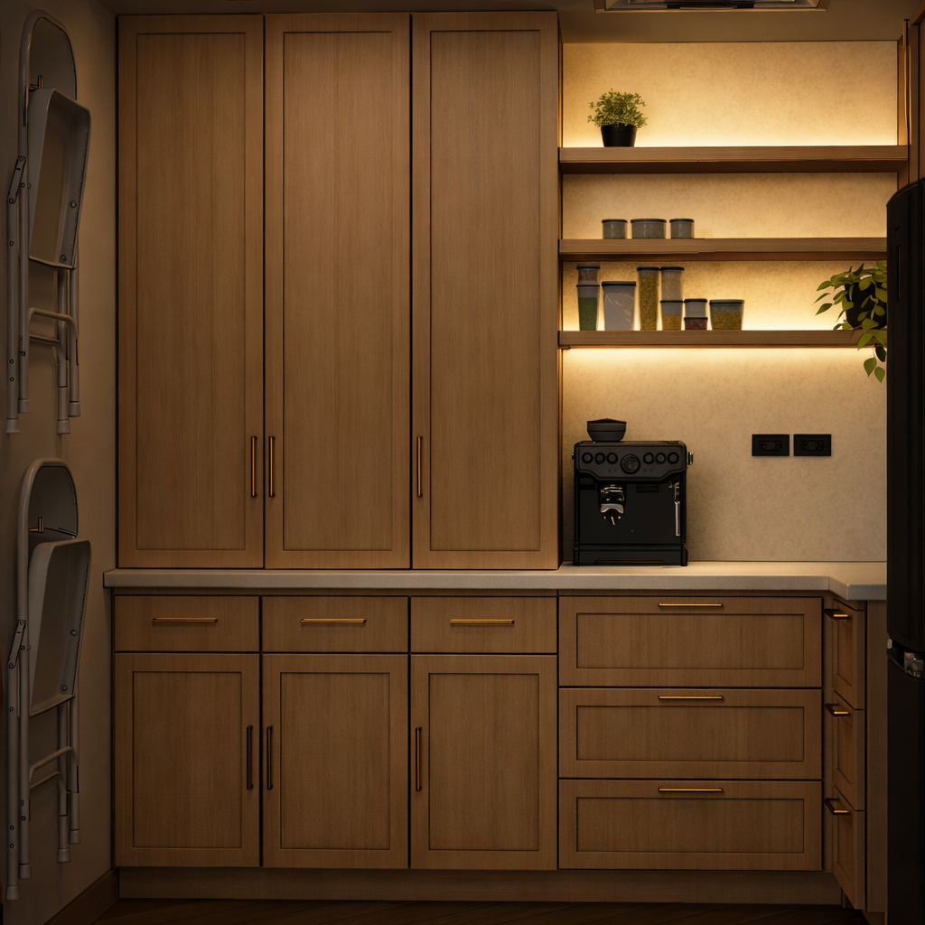 - The Logic of Flow: Traditional doors can be intrusive in a busy kitchen. By installing a sliding pantry door, we eliminated “door-swing” interference. This maintains a clean architectural profile while maximizing every square inch of floor space.